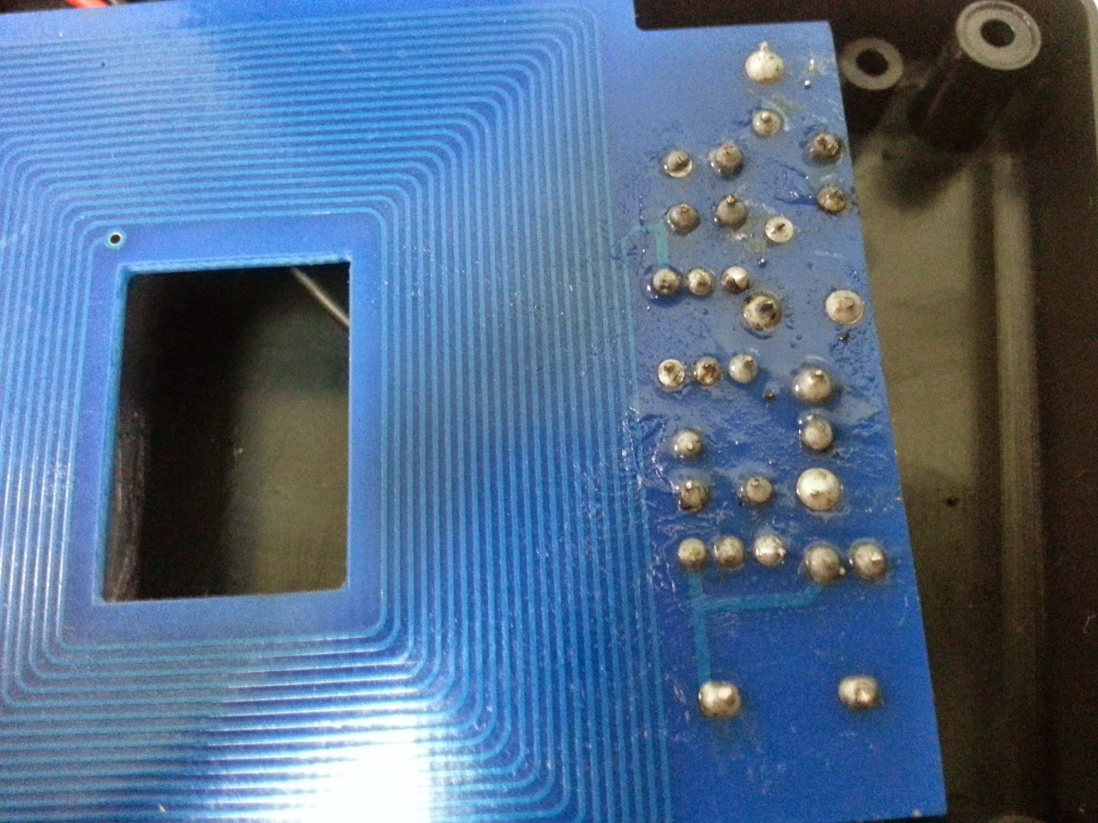 電路板近拍, 主要部分左邊是零件焊接處, 右邊很多圈的是感應線圈。