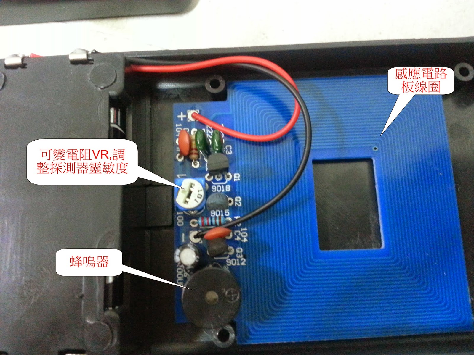 根據聲音有無,就可以判定探測線圈下面是否有金屬物體了。