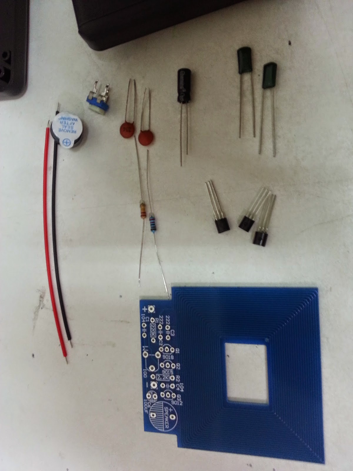 在機場安檢時若經過安全門有叫聲, 安檢人員就會叫你到旁邊,拿一支專業的金屬偵測器在你全身上下掃描, 看看你有沒有攜帶被禁止的金屬物品, 如刀、槍等。本套件是一個簡單的偵測設備,也有一些偵測的效果。