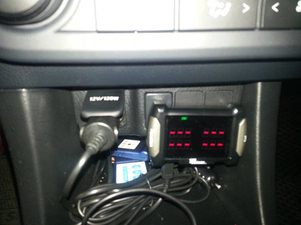 ↓本來只有插點煙器, 電源線很亂, 後來就將電線做一個整理收到裡面去了, 以下三張照片是不是比較清爽一點了呢?