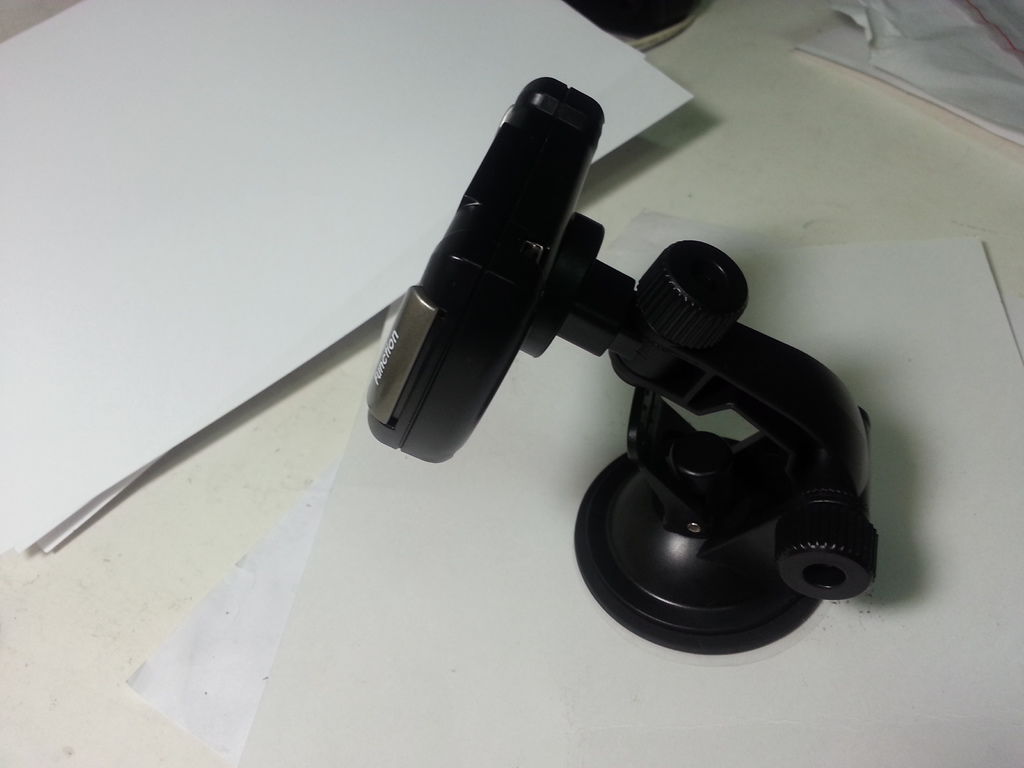吸盤與顯示器是用磁鐵吸住的, 放在前玻璃上有點防礙開車視線, 後來我就放在點煙座旁的空間(有3個預備安裝各種設備的小按鈕方格), 剛剛好, 打算在沒裝按鈕的小方格貼上強力磁鐵, 就可以固定。