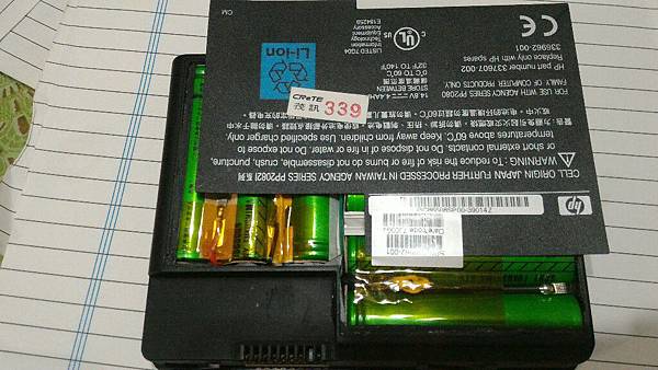 很容易就將鋁片敲起來, 只是用強力膠粘住而己, 沒有螺絲, 直接拿下標簽就看到18650電池了, 算一算,一共有8顆。